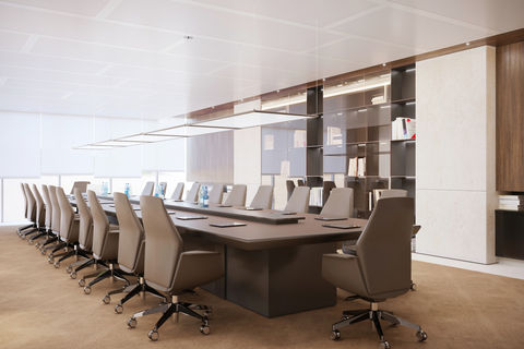 Complete project at the headquarters of the kaz minerals company in almaty. Large format meeting tables, demsontable, combinable and management offices with bookcases and customized sideboards.